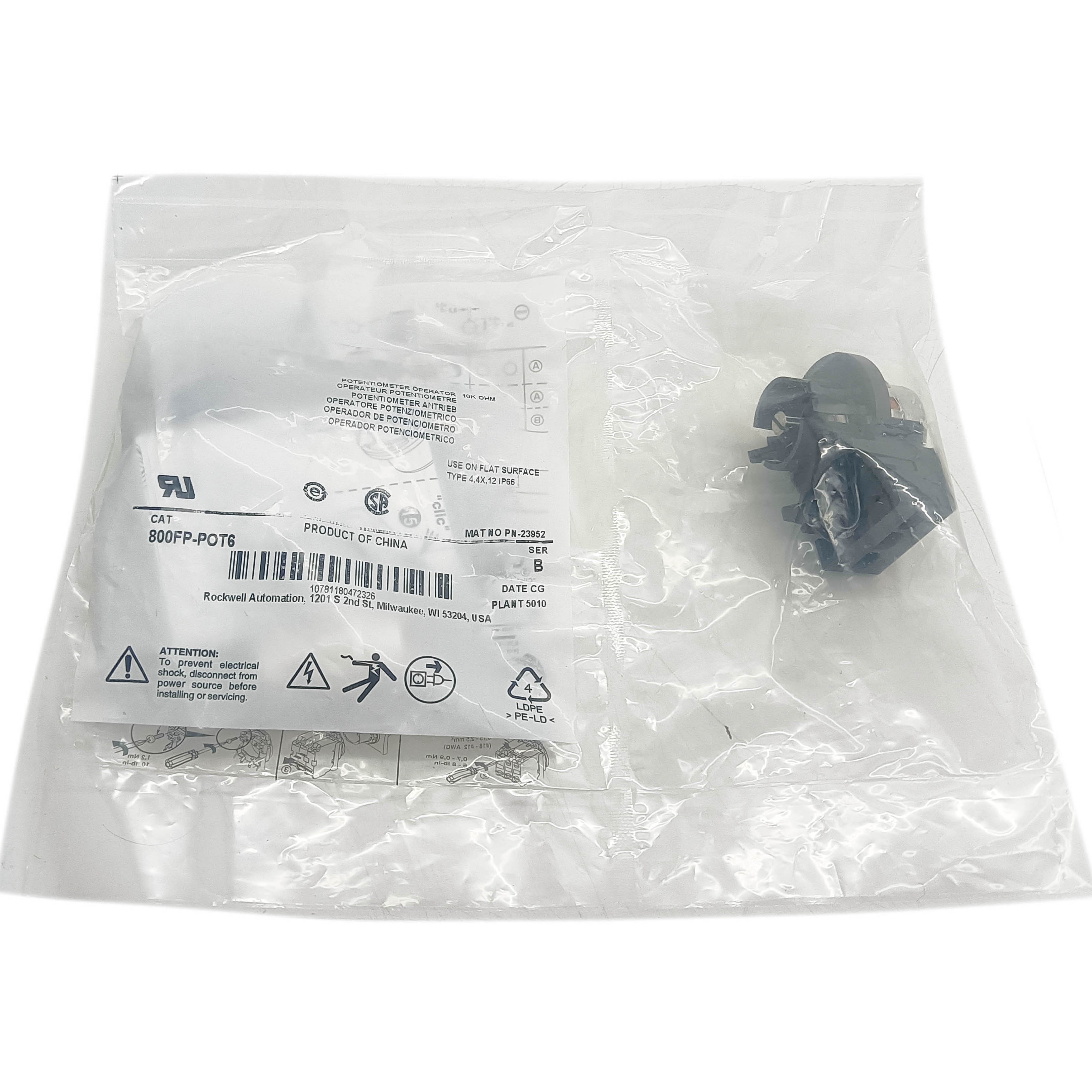 The 800FP-POT6 potentiometer operator delivers precision control for industrial automation and instrumentation systems. Rated at 10K OHM, this Allen-Bradley component provides stable, repeatable resistance adjustment essential for voltage regulation, signal conditioning, and equipment calibration. Built with industrial-grade durability, it withstands demanding operational environments including temperature variations and mechanical stress. The operator mechanism offers smooth actuation with minimal drift, critical for applications requiring consistent performance over extended service intervals. Designed for straightforward panel mounting and field replacement, it integrates efficiently into control cabinets and distributed systems. Trusted by automation engineers and maintenance professionals for its reliability and longevity, this new unit ensures your critical processes maintain optimal performance without interruption.
