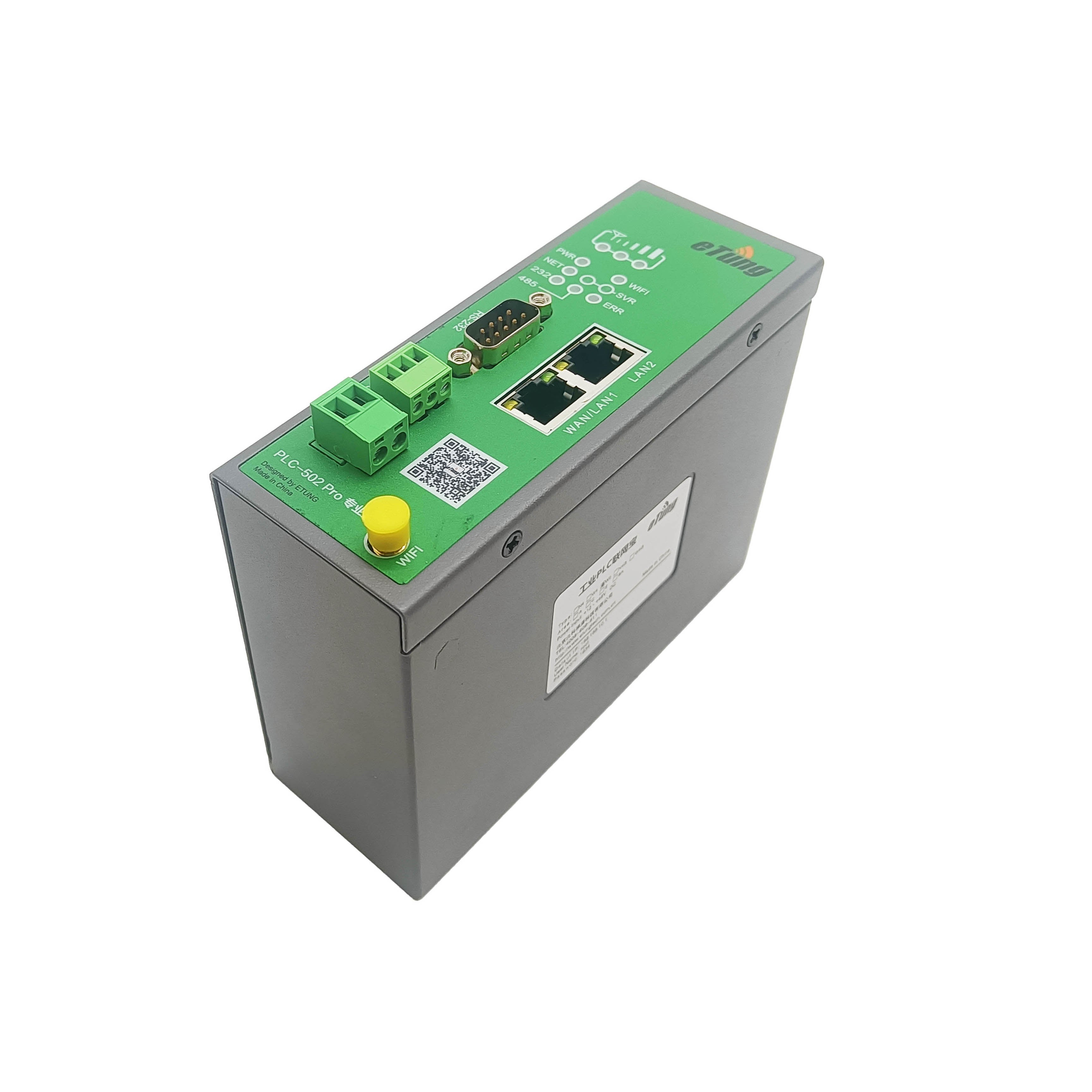 The PLC-502Pro represents a sophisticated industrial IoT gateway solution designed for mission-critical automation applications. This authentic eTung device combines WiFi connectivity with advanced protocol support, enabling real-time communication between legacy industrial systems and modern cloud infrastructure. Purpose-built for manufacturing environments, it delivers reliable edge processing, secure data transmission, and comprehensive device management capabilities. The gateway architecture supports multi-protocol integration, allowing seamless interoperability across diverse equipment ecosystems. Engineered for industrial-grade performance, it withstands demanding operational conditions while maintaining consistent uptime. Perfect for enterprises implementing Industry 4.0 initiatives requiring dependable connectivity and intelligent data aggregation at the network edge.