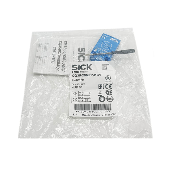 The CQ35-25NPP-KC1 Capacitive Proximity Sensor from SICK (model 6020479) offers precise, reliable detection of non-metallic objects through capacitive sensing technology. Designed for industrial automation, it delivers consistent performance in challenging environments, ensuring accurate target recognition and enhanced process control. Its robust construction and advanced electronics minimize false triggers and extend operational life, making it ideal for applications requiring sensitive, contactless detection of diverse materials.
