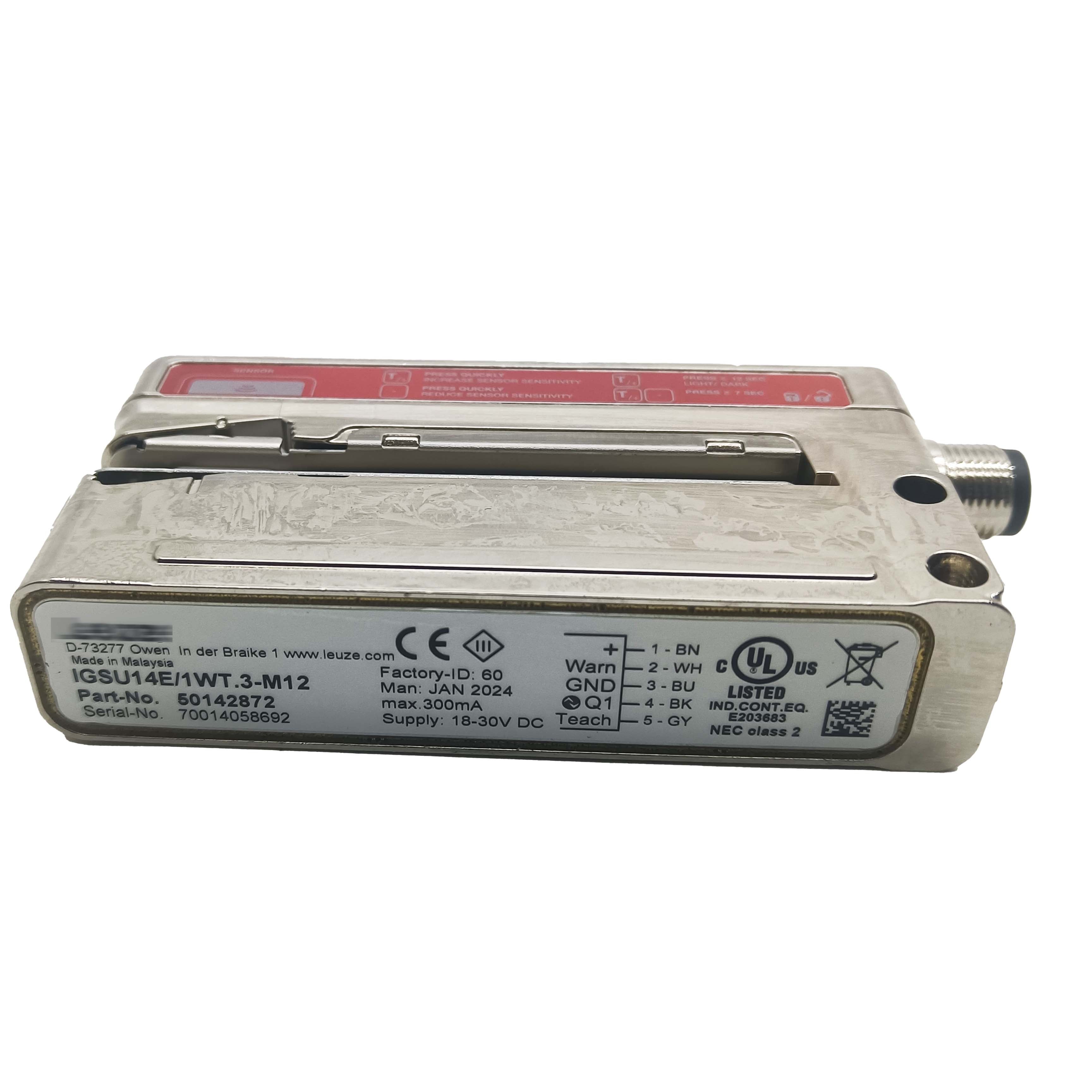 The Leuze Ultrasonic Fork Sensor 50142872 (IGSU14E/1WT.3-M12) offers precise, non-contact detection for reliable object sensing in industrial automation. Its fork-shaped design enables accurate position monitoring and presence detection without physical wear, enhancing system longevity. Featuring robust ultrasonic technology and an M12 connector, it ensures seamless integration and dependable performance in demanding environments. This sensor is ideal for applications requiring consistent, high-precision detection to optimize process control and reduce maintenance needs.