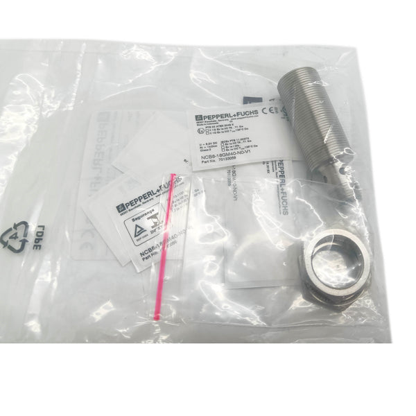 The NCB8-18GM40-N0-V1 is a precision inductive sensor from Pepperl+Fuchs, engineered for reliable object detection in industrial automation applications. This compact M18 cylindrical sensor delivers consistent performance in demanding environments, featuring robust construction and excellent repeatability. With its standardized connector interface, integration into existing systems is straightforward. The sensor's advanced sensing technology ensures accurate detection of ferrous and non-ferrous metals at specified distances, making it ideal for positioning, counting, and presence detection tasks. Built to withstand harsh conditions, it offers dependable operation across temperature variations and challenging industrial settings.