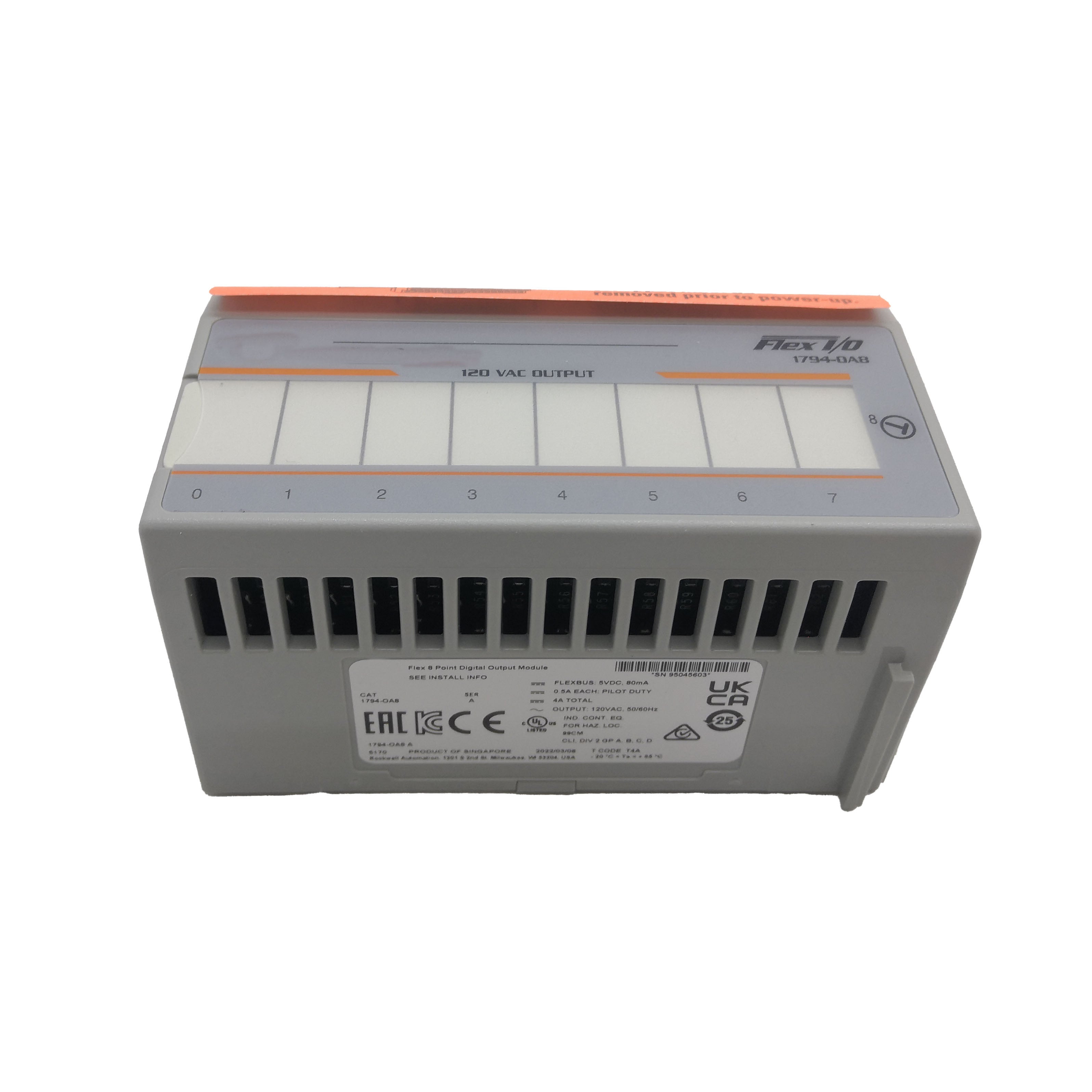 With 8 isolated output channels, this module allows PLC systems to control actuators, solenoids, contactors, and indicator devices efficiently. Its compact FLEX I/O design reduces panel space while maintaining industrial-grade reliability.